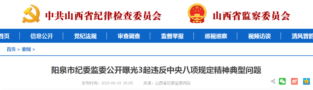 2023年端午節(jié)將至,陽(yáng)泉市紀(jì)委監(jiān)委公開(kāi)曝光3起近期查處的違反中央八項(xiàng)規(guī)定精神典型問(wèn)題。具體如下: