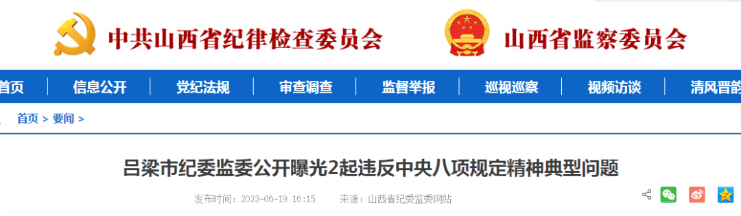 2023年端午節(jié)將至,為鞏固落實(shí)中央八項(xiàng)規(guī)定精神成果,堅(jiān)持糾“四風(fēng)”樹(shù)新風(fēng)協(xié)同發(fā)力,突出警示教育引導(dǎo),營(yíng)造風(fēng)清氣正的節(jié)日氛圍,呂梁市紀(jì)委監(jiān)委公開(kāi)曝光2起近期查處的違反中央八項(xiàng)規(guī)定精神典型問(wèn)題。具體如下: