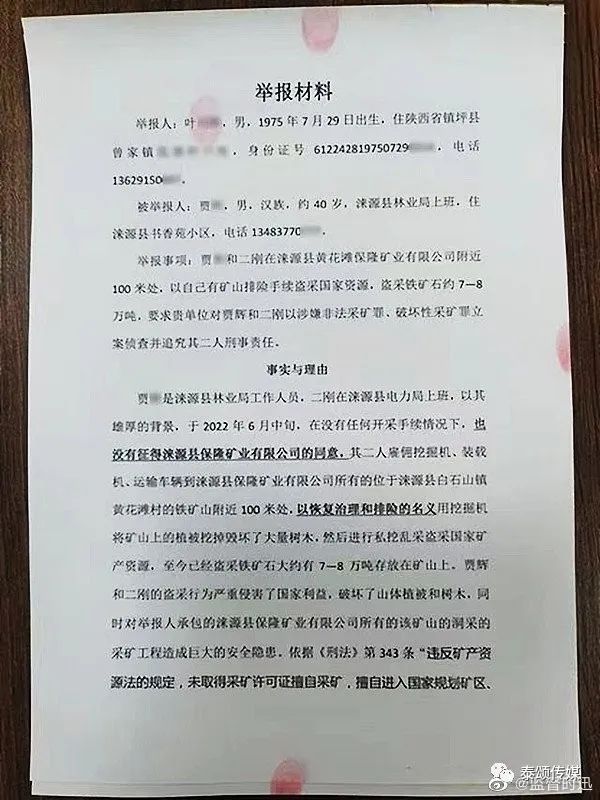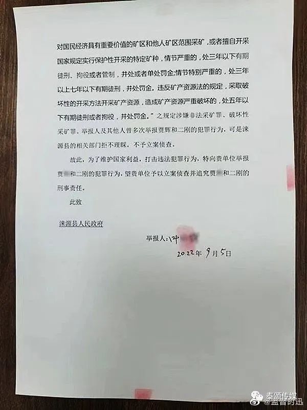舉報(bào)人反映,其曾于2022年11月1日通過郵箱向河北省保定市淶源縣自然資源局舉報(bào)了林業(yè)局工作人員知法犯法破壞生態(tài)采礦行為。舉報(bào)幾個(gè)小時(shí)后卻接到來自被舉報(bào)人的威脅電話,執(zhí)法部門的做法令其質(zhì)疑。