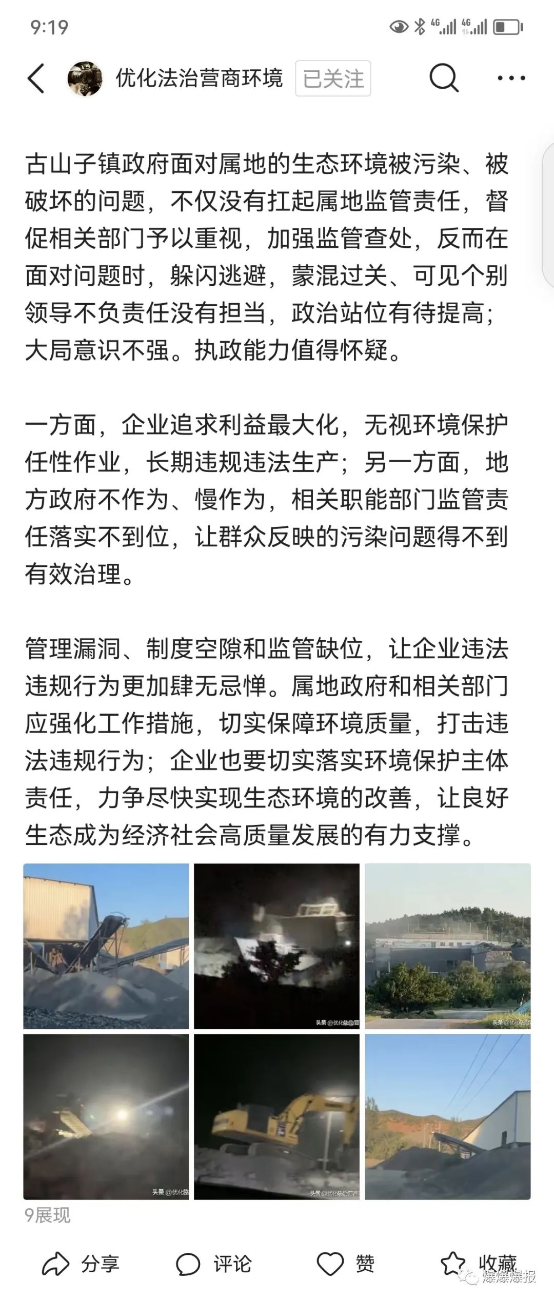 古山子鎮(zhèn)政府面對(duì)屬地的生態(tài)環(huán)境被污染、被破壞的問(wèn)題,不僅沒(méi)有扛起屬地監(jiān)管責(zé)任,督促相關(guān)部門予以重視,加強(qiáng)監(jiān)管查處,反而在面對(duì)問(wèn)題時(shí),躲閃逃避,蒙混過(guò)關(guān)、可見(jiàn)個(gè)別領(lǐng)導(dǎo)不負(fù)責(zé)任沒(méi)有擔(dān)當(dāng),政治站位有待提高;大局意識(shí)不強(qiáng)。執(zhí)政能力值得懷疑。