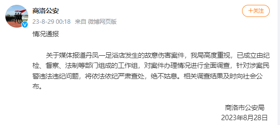 8月29日凌晨,商洛市公安局發(fā)布情況通報(bào)表示,已成立工作組對(duì)案件辦理情況進(jìn)行全面調(diào)查。