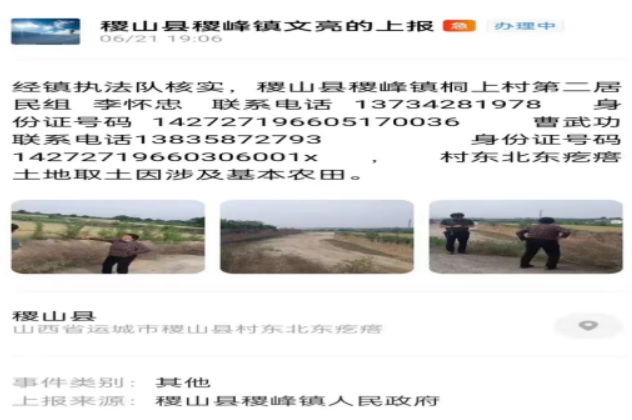 然而,山西省運(yùn)城市稷山縣稷峰鎮(zhèn)桐上村支部書記曹海東,為了利益不擇手段,公然抗法私自將村民李引法侄兒等耕地六畝非法侵占,并且把耕地上的土多次賤賣,村民李引法作為老黨員,為維護(hù)該村耕地不被侵占出面阻擋,多次受到曹海東恐嚇威脅。對(duì)于自己破壞耕地,私挖國(guó)家資源根本無(wú)所畏忌。