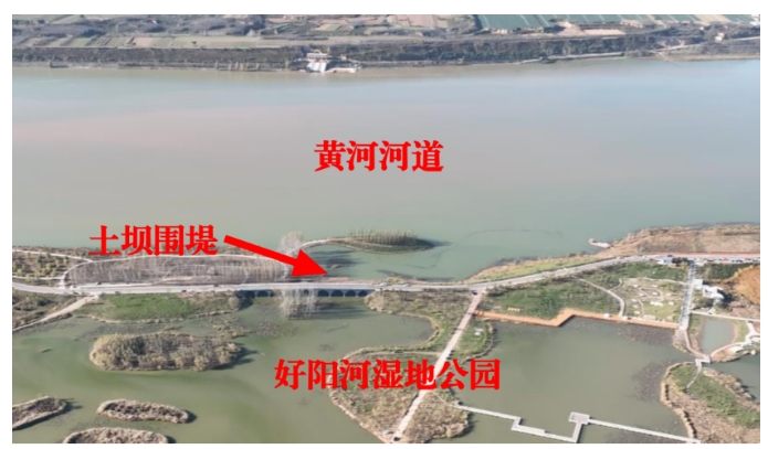 為了打造濕地公園,三門(mén)峽市城鄉(xiāng)一體化示范區(qū)在好陽(yáng)河入黃河口處違規(guī)修筑土壩圍堤,將原來(lái)連通的水系生生截?cái)?,阻礙了黃河干流與好陽(yáng)河支流的正常連通。