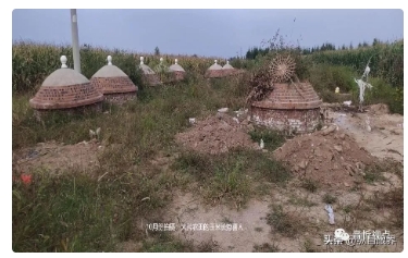 2023年12月10日,在村民的領(lǐng)路下,來(lái)到現(xiàn)場(chǎng),耕地建設(shè)的墓穴像圓形堡壘一樣分布在那里,現(xiàn)場(chǎng)看到,前排1至11號(hào)座墳?zāi)怪挥?號(hào)使用,其他墓穴閑置,在所建的墓地中近一半空置(未埋死者)。墓穴周圍看到的都是耕地。明顯的看出已建設(shè)墓穴的土地,已經(jīng)不能再進(jìn)行耕種。