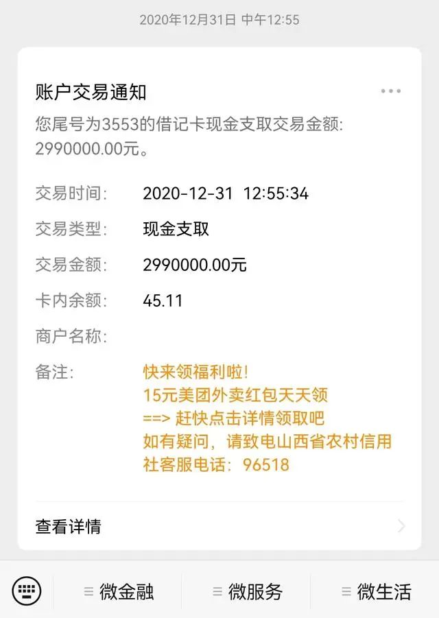 冀某群的微信顯示貸款當(dāng)天便被提現(xiàn)299萬元(當(dāng)事人供圖)