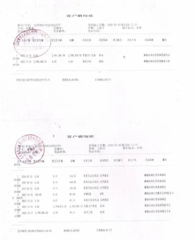 銀行明細(xì)顯示299萬元當(dāng)天入賬當(dāng)天提現(xiàn)(當(dāng)事人供圖)
