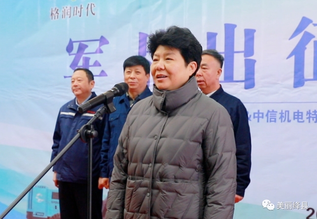 儀式上,中信機(jī)電特種裝備公司總經(jīng)理翟衛(wèi)東介紹車輛生產(chǎn)情況,格潤時代董事長尚斌介紹項目基本情況及發(fā)展前景,縣政府副縣長張瑞軒致辭。