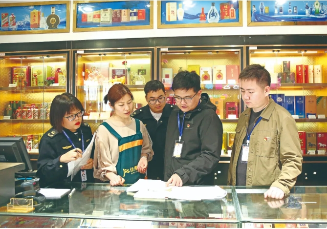 湖南省保靖縣紀委監(jiān)委聯(lián)合市場監(jiān)管部門成立專項督查組,深入餐館、超市、煙酒專賣店等重點場所開展監(jiān)督檢查,對“五一”節(jié)前違規(guī)吃喝、公款送禮等問題進行監(jiān)督檢查,嚴防“四風(fēng)”反彈回潮。圖為近日,該縣專項督查組工作人員在某超市調(diào)查走訪。龍術(shù)娥 攝