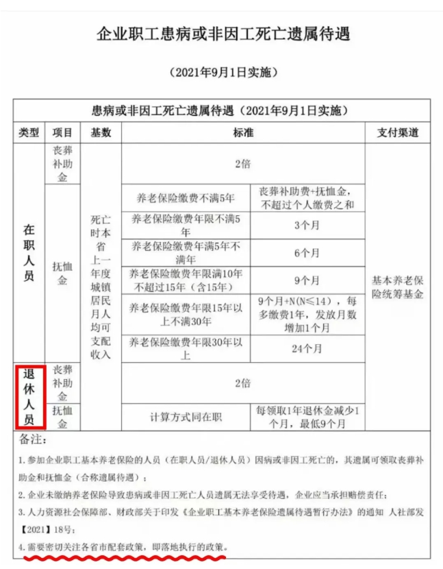 而退休人員的撫恤金領取標準則是:9個月-24個月。