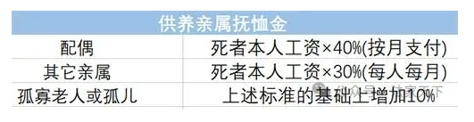 2) 供養(yǎng)親屬撫恤金按照職工本人工資的一定比例發(fā)給由因工死亡職工生前提供主要生活來源、無勞動能力的親屬。