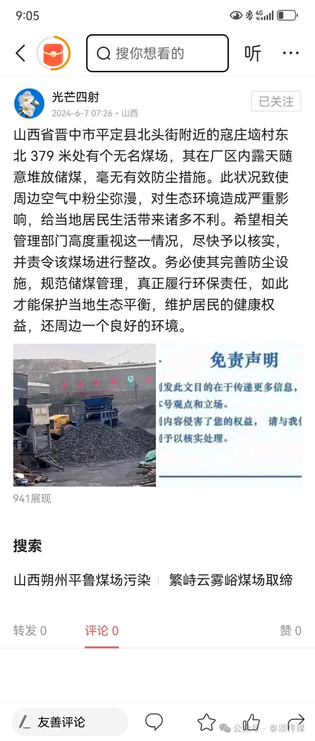 山西省晉中市平定縣北頭街附近的寇莊垴村東北 379 米處有個無名煤場,其在廠區(qū)內(nèi)露天隨意堆放儲煤,毫無有效防塵措施。此狀況致使周邊空氣中粉塵彌漫,對生態(tài)環(huán)境造成嚴(yán)重影響,給當(dāng)?shù)鼐用裆顜碇T多不利。希望相關(guān)管理部門高度重視這一情況,盡快予以核實,并責(zé)令該煤場進(jìn)行整改。