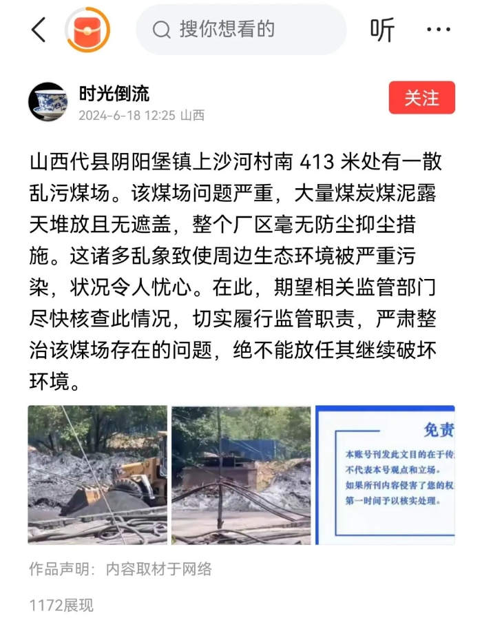在此,期望相關(guān)監(jiān)管部門(mén)盡快核查此情況,切實(shí)履行監(jiān)管職責(zé),嚴(yán)肅整治該煤場(chǎng)存在的問(wèn)題,絕不能放任其繼續(xù)破壞環(huán)境。