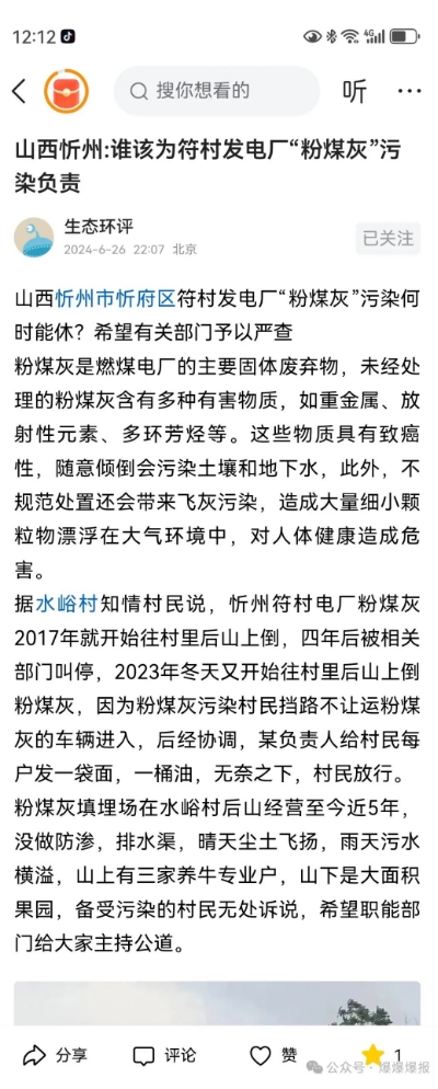 山西忻州市忻府區(qū)符村發(fā)電廠“粉煤灰”污染何時(shí)能休?希望有關(guān)部門予以嚴(yán)查