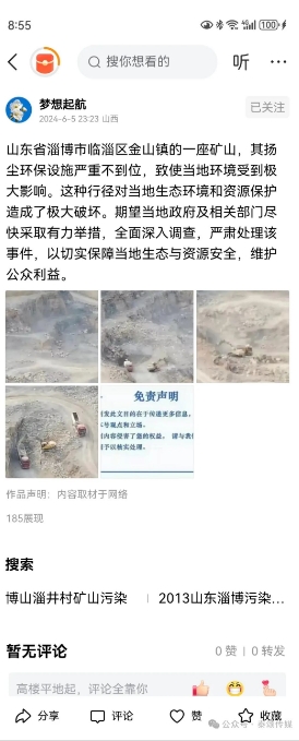 期望當(dāng)?shù)卣跋嚓P(guān)部門盡快采取有力舉措,全面深入調(diào)查,嚴(yán)肅處理該事件,以切實保障當(dāng)?shù)厣鷳B(tài)與資源安全,維護公眾利益。山東省淄博市臨淄區(qū)金山鎮(zhèn)的一座礦山,其揚塵環(huán)保設(shè)施嚴(yán)重不到位