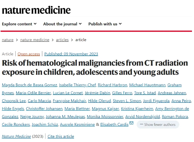最近,Nature Medicine上有一篇題為“Risk of hematological malignancies from CT radiation exposure in children, adolescents and young adults(兒童、青少年和年輕人CT輻射暴露引起血液系統(tǒng)惡性腫瘤的風(fēng)險(xiǎn))”的研究引起了小編的注意。