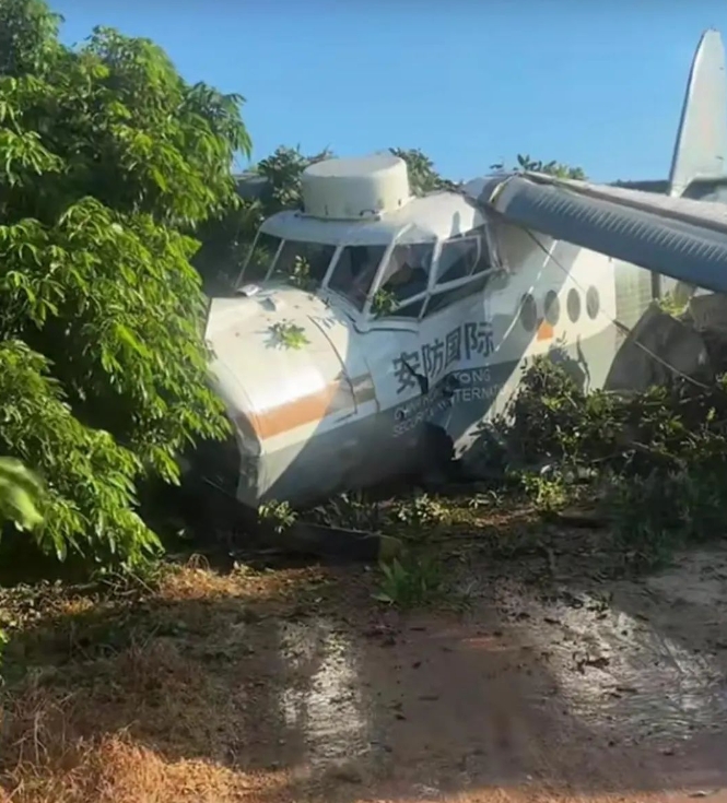 網(wǎng)友發(fā)布的視頻顯示,一架白色飛機(jī)墜落地上,機(jī)身印有“安防國際”四個字。視頻拍攝者說:“(飛機(jī))掉下來十分鐘了,還在漏油,地上全都是油?!?