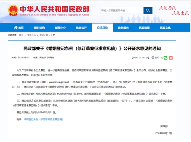 8月12日,《婚姻登記條例(修訂草案征求意見(jiàn)稿)》(以下簡(jiǎn)稱(chēng)草案)在民政部網(wǎng)站全文公布并公開(kāi)向社會(huì)征求意見(jiàn)。修訂草案相比原條例,在登記程序上作了較大修改。