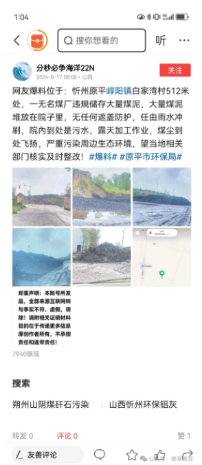 洛陽市嵩縣閻莊鎮(zhèn)仝莊村南山溝內(nèi)坡上非法采挖石料,晚上大車出進(jìn)出售石料,噪音極大,揚(yáng)塵四起滿天飛,白天鉤機(jī)在溝內(nèi)山坡上采挖石料,保護(hù)環(huán)境人人有責(zé),應(yīng)該承擔(dān)起相應(yīng)的責(zé)任。希望大家能夠關(guān)注此事,共同呼吁相關(guān)部門盡快解決污染問題,讓當(dāng)?shù)匕傩漳軌驌碛幸粋€良好的生活環(huán)境。