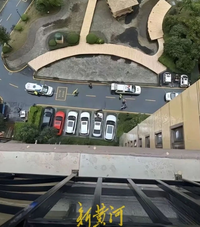 網(wǎng)傳多個(gè)視頻、圖片顯示,小區(qū)高樓下道路旁停著一排小車,其中一輛銀色小車發(fā)動(dòng)機(jī)蓋上面趴著一人,小車的前防桿已明顯裂開。一些民警及穿防護(hù)服的工作人員正在開展調(diào)查勘驗(yàn)工作,周圍則拉著警戒線。