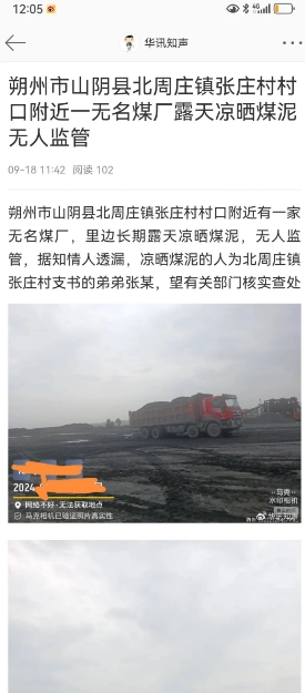 朔州市山陰縣北周莊鎮(zhèn)張莊村村口附近有一家無名煤廠,里邊長期露天涼曬煤泥,無人監(jiān)管,據(jù)知情人透漏,涼曬煤泥的人為北周莊鎮(zhèn)張莊村支書的弟弟張某,望有關部門核實查處