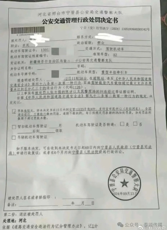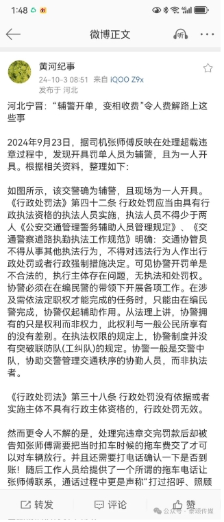 2024年9月23日,據(jù)司機(jī)張師傅反映在處理超載違章過(guò)程中,發(fā)現(xiàn)開(kāi)具罰單人員為輔警,且為一人開(kāi)具。根據(jù)相關(guān)資料,整理如下: