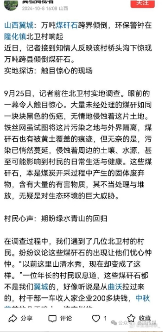 山西翼城北衛(wèi)村的煤矸石事件,再次敲響了環(huán)保的警鐘。它提醒我們,在追求經濟發(fā)展的同時,絕不能忽視對生態(tài)環(huán)境的保護。