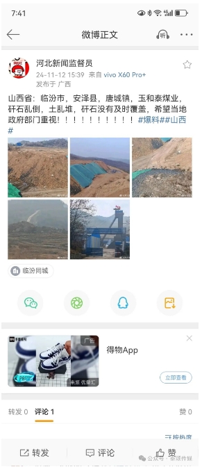 山西?。号R汾市,安澤縣,唐城鎮(zhèn),玉和泰煤業(yè),矸石亂倒,土亂堆,矸石沒有及時覆蓋,希望當?shù)卣块T重視!