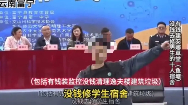 11月15日,云南省富寧縣一中科技節(jié)現(xiàn)場,一名學生突然走上講臺拿起話筒說:“有錢請無人機表演,有錢建安娜草堂,沒錢修學生宿舍”。隨后,該學生被多名工作人員帶走,此事引發(fā)關注。