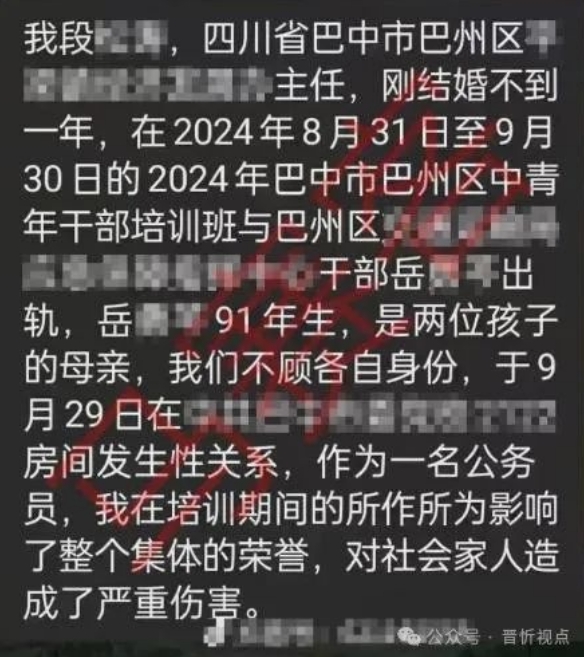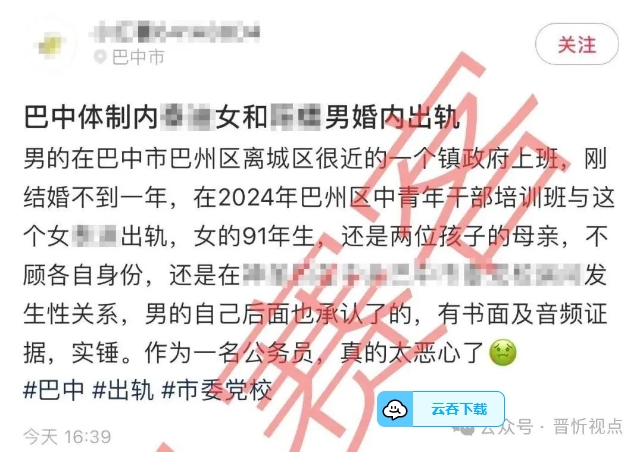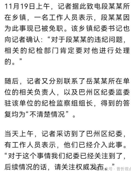 近日,有網(wǎng)友稱,四川巴中市巴州區(qū)下轄一鄉(xiāng)鎮(zhèn)干部,在2024年巴中市巴州區(qū)中青年干部培訓(xùn)期間,出軌該區(qū)另一單位女干部。11月19日,記者獲悉,該鄉(xiāng)鎮(zhèn)干部現(xiàn)已被免職,巴州區(qū)紀(jì)委針對此事也已介入調(diào)查。