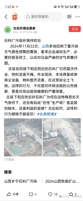古縣下陽(yáng)莊附近砂石料廠為何在這特殊惡劣天氣條件下,還會(huì)有如此“任性”生產(chǎn)呢?是監(jiān)管的缺失,還是利益的驅(qū)使?無(wú)論如何,這樣的行為都絕不能容忍!#頭條新聞#