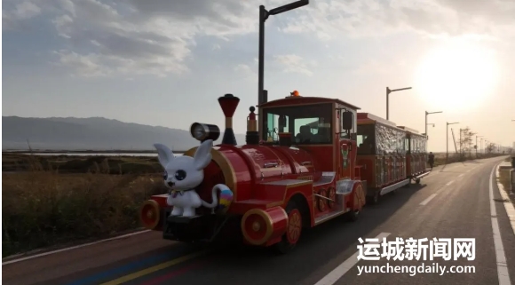 漫步鹽池岸畔,游客遠(yuǎn)遠(yuǎn)的就能看到一列“亮眼”的小火車,它有紅色的車身,造型復(fù)古,火車頭還有運(yùn)城鹽池的形象代言人“鹽精靈”,小火車一次可以乘坐40名游客。為了更好地保障游客乘坐體驗(yàn),小火車上還增加了透明防風(fēng)簾,既擋風(fēng)又可以欣賞沿途的美景。