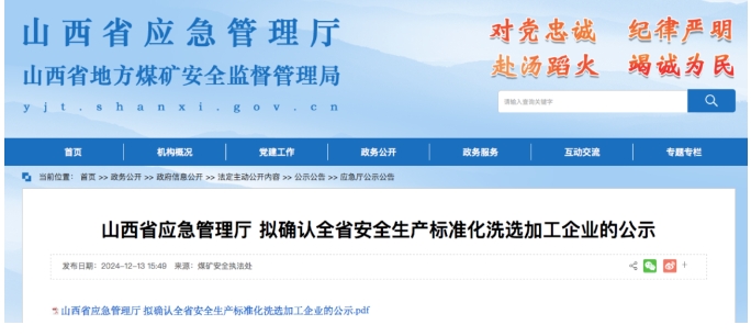 擬確認(rèn)三級(jí)安全生產(chǎn)標(biāo)準(zhǔn)化洗選加工企業(yè)公示名單