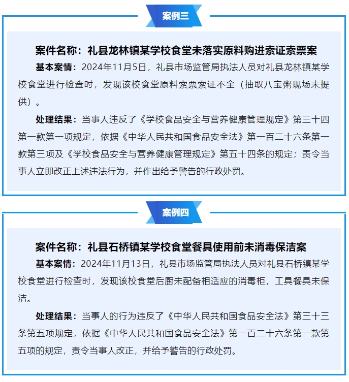 中國品牌與防偽雜志/中國品牌質(zhì)量網(wǎng)訊 本刊記者從禮縣市場監(jiān)管局官方微信公眾號“禮縣市場監(jiān)管”獲悉,該局于2024年12月16日在其官微上曝光了校園食品安全排查整治專項行動典型案例。為進(jìn)一步消除校園食品安全風(fēng)險隱患,壓緊壓實學(xué)校食品安全主體責(zé)任,切實保障廣大師生飲食安全,禮縣市場監(jiān)管局持續(xù)開展校園食品安全專項檢查,該局檢查中發(fā)現(xiàn)的4起典型案例如下: