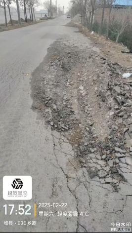 本網(wǎng)今日接多名村民反映,在絳縣大交鎮(zhèn)續(xù)魯村,030鄉(xiāng)道有一處由于車輛超載嚴(yán)重,將路面碾壓損壞,受損面積大約占路面1/3,時(shí)間大概有半年有余,此處每日過往車輛較多容易造成交通事故,給人民生命財(cái)產(chǎn)帶來安全隱患,請有關(guān)領(lǐng)導(dǎo)到現(xiàn)場俯下身子查看查看,進(jìn)行設(shè)置危險(xiǎn)標(biāo)識(shí),和修復(fù)。讓老百姓出行安全得到保障。使他們出門更放心!。