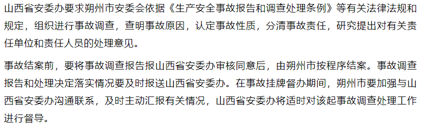 近日,山西省安委辦發(fā)布《關(guān)于對(duì)山西省懷仁市河大線“2·16”較大道路交通事故查處掛牌督辦的通知》,2025年2月16日7時(shí)42分許,山西省懷仁市河大線由西向東6KM+194M處,發(fā)生一起一輛輕型欄板貨車(chē)與一輛重型欄板半掛車(chē)碰撞事故,共造成4人死亡,1人受傷。根據(jù)《國(guó)務(wù)院關(guān)于進(jìn)一步加強(qiáng)企業(yè)安全生產(chǎn)工作的通知》《山西省較大事故查處掛牌督辦辦法》等有關(guān)規(guī)定要求,山西省安委辦決定對(duì)該起事故的查處實(shí)行掛牌督辦。
