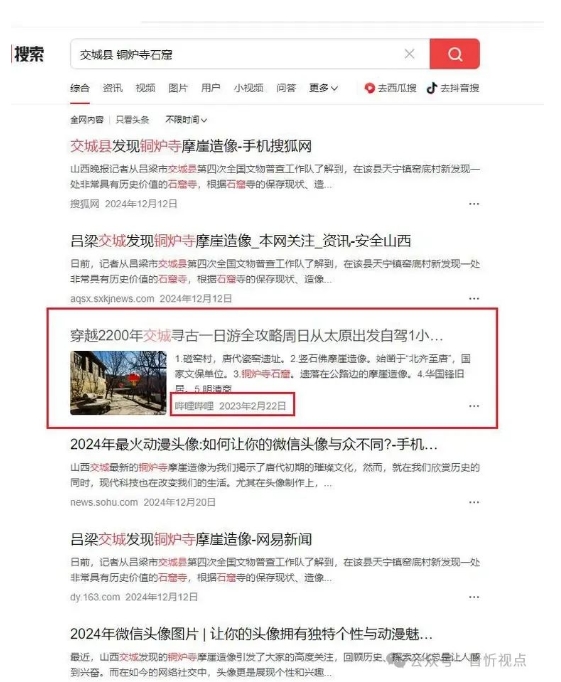 2023年2月,有人整理交城一日游便提到了銅爐寺石窟