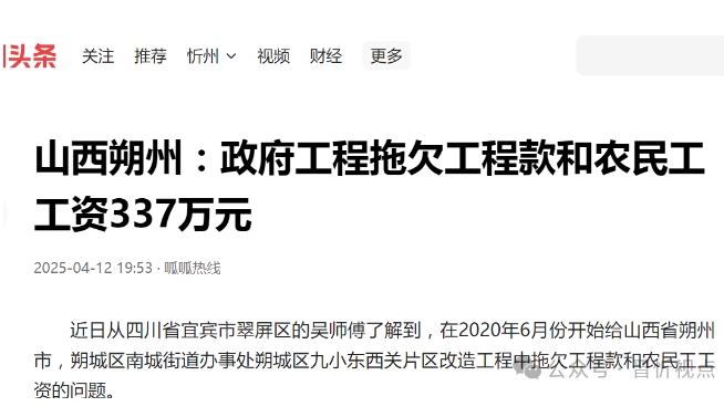 吳師傅說:為了這個項目我還在銀行貸款40萬元,這力也出了,錢也出了。本以為政府工程是不會欠錢的,真是沒想到在山西在朔州是這么個情況。到現(xiàn)在2025年4月份我還是一分錢沒有拿到。我還不了銀行的錢,現(xiàn)在是失信人員了。我有兩個孩子,一個上大學(xué),一個上高中。這個家因為這個工程已經(jīng)崩潰。