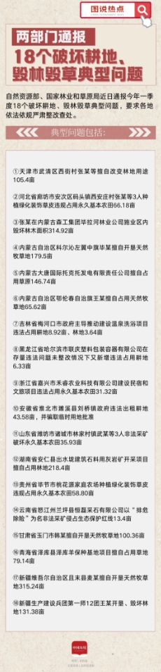 為切實(shí)發(fā)揮警示震懾作用,兩部門日前聯(lián)合通報(bào)18個(gè)破壞耕地、毀林毀草典型問(wèn)題。