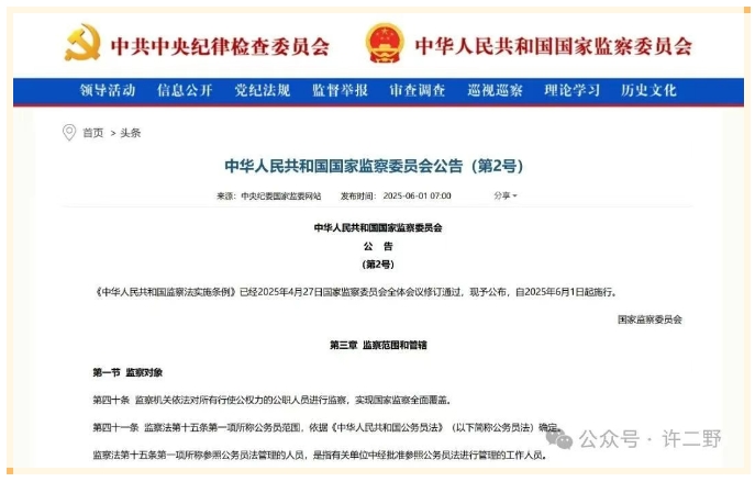 新修訂《監(jiān)察法實施條例》6月1日起實施,其中最具突破性的條款之一,