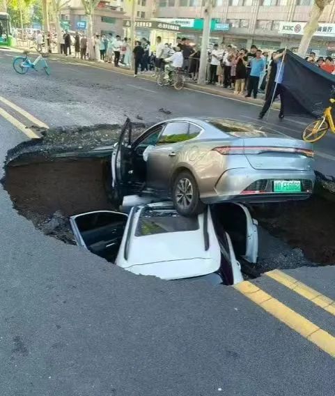 今日,河北省邯鄲市邯山區(qū)光明路和水廠路交會處發(fā)生地面塌陷,有兩輛小型轎車以疊羅漢方式墜入坑中,視頻引發(fā)關(guān)注。