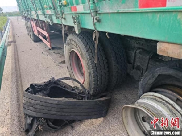 6月8日15時許,山西高速交警二支隊七大隊接到電話報警,稱廣源高速距蕉山檢查站5公里處,兩輛重型貨車爆胎停在路邊。