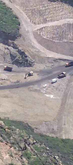 山西省古交市西曲街道,晶源能源后側(cè)廠區(qū),最后面挖機(jī)在挖動(dòng)山體,大車行駛塵土飛揚(yáng),無(wú)任何環(huán)保措施,而且廠區(qū)挖機(jī)挖動(dòng)山體,且煤矸石也沒有傾倒在矸石處置場(chǎng),而是傾倒在挖機(jī)挖出來(lái)的坑里,每輛大車都存在超載現(xiàn)象。