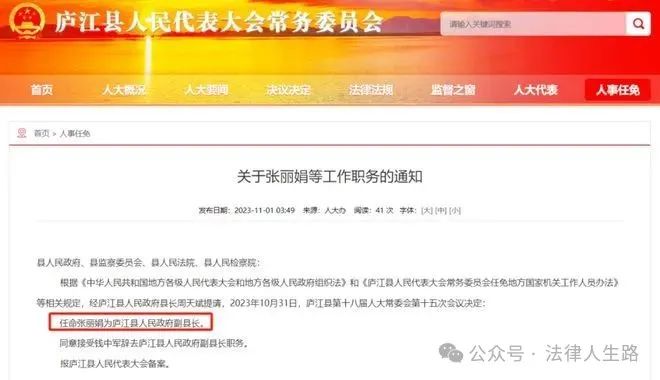 據(jù)公開信息顯示:通報中,違規(guī)吃喝人員中級別最高的為廬江縣副縣長張麗娟,其是1名“80后”領(lǐng)導(dǎo)干部,1982年3月出生,女,法學(xué)學(xué)士。曾擔(dān)任廬江縣共青團(tuán)委書記、黨組書記,郭河鎮(zhèn)黨委副書記、鎮(zhèn)長,龍橋鎮(zhèn)黨委書記,廬江臺灣農(nóng)民創(chuàng)業(yè)園黨工委書記、管委會主任(副縣級)等職;2023年10月,任廬江縣副縣長。