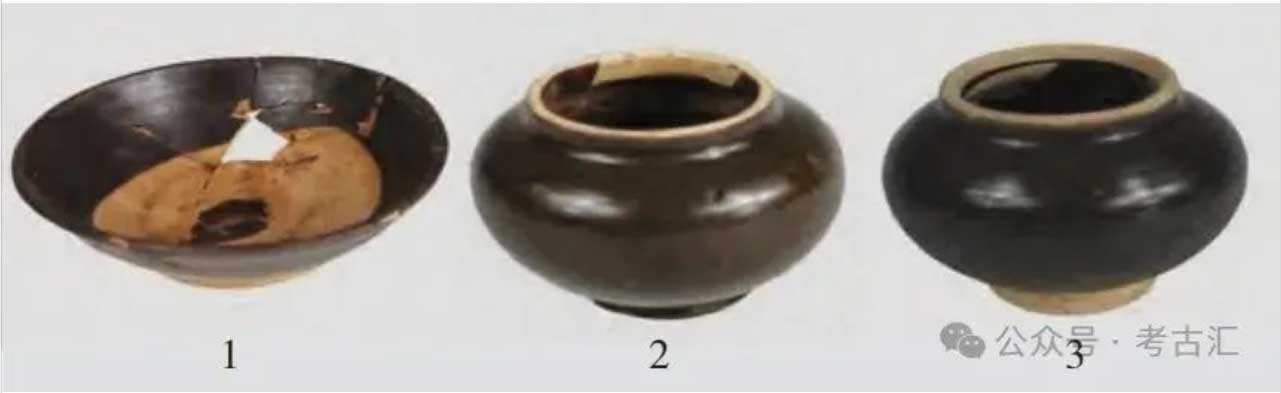 1.瓷碗(M14:2) 2.瓷罐(M14:3)