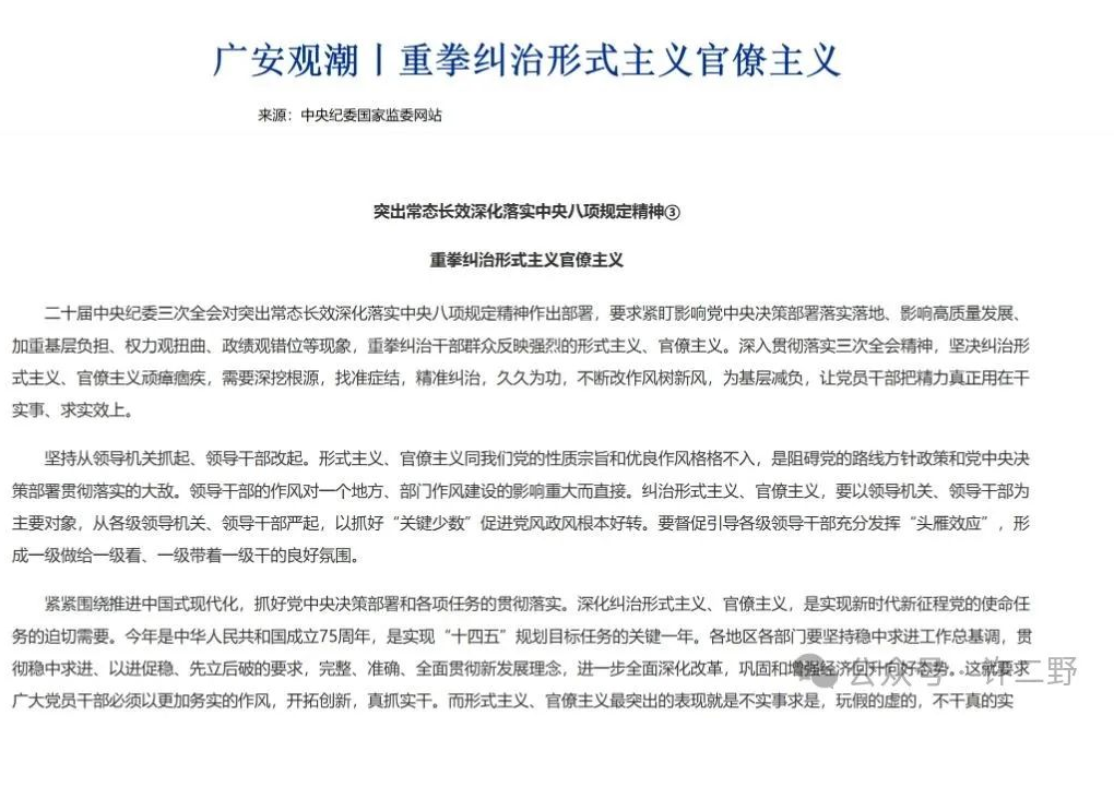 形式主義不是年年講、年年查嗎?今日有何不同?