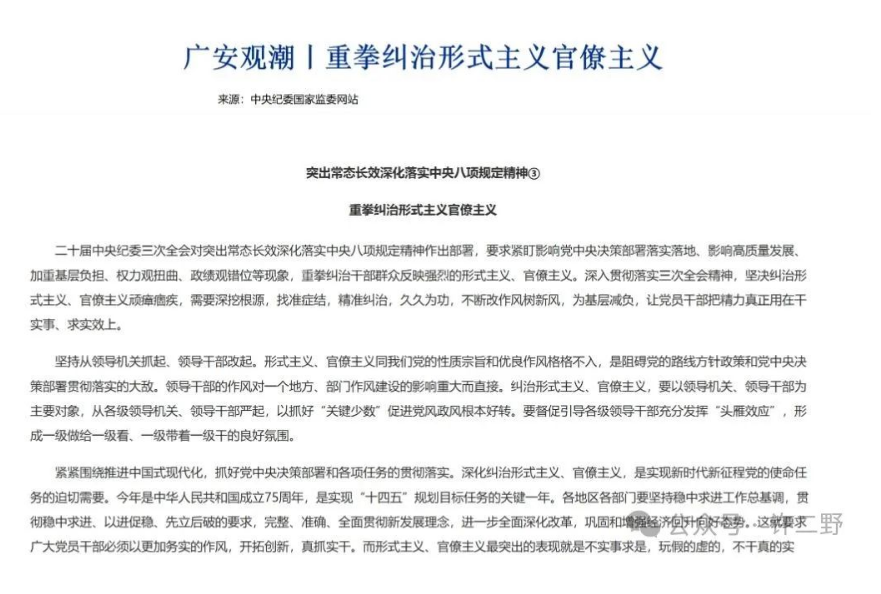 形式主義不是年年講、年年查嗎?今日有何不同?