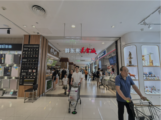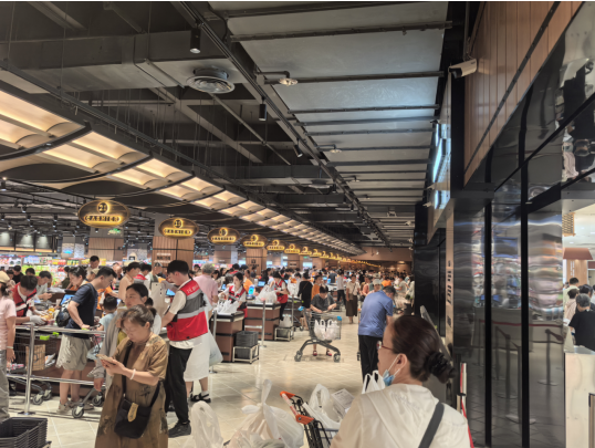 我們邊喝星巴克買來的兩杯拿鐵邊上胖東來超市三樓,準(zhǔn)備體驗一把胖東來生活超市帶來的快感,走進胖東來生活超市首先映入眼簾的是熙熙攘攘穿梭于生活超市間的顧客以及琳瑯滿目各種各樣的商品。