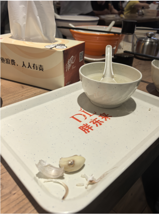 我吃飯有吃蒜的習(xí)慣,特別是吃肉的時候必須吃幾瓣蒜才能感覺到香,于是我走到南北小炒攤位前準(zhǔn)備跟老板要幾瓣蒜,這時正好也有一位顧客來找蒜吃,攤位工作人員把一個裝著蒜的不銹鋼小桶缸遞給了那位顧客,那位顧客伸手在桶缸里拿了幾瓣蒜轉(zhuǎn)身走了,我急忙接過裝蒜的桶缸回到座位上從桶缸里拿了一瓣蒜吃了起來,這時侄兒卻大聲的“哎”了一聲,我扭頭問他怎么了,侄兒說胖東來怎么還拿壞了的蒜給顧客吃,簡直不敢相信呀!