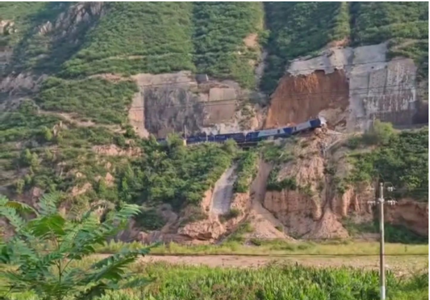 另據(jù)其他網(wǎng)友爆料視頻顯示,山體塌方后,一列火車停在鐵路線上,車頭疑似傾斜,火車鳴笛聲不斷。