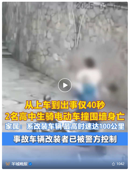 陶女士稱,當天兒子同學的電動兩輪車剛改裝好,幾個同學去試乘車,她兒子剛坐上車的后座40秒就發(fā)生事故,兒子被甩墻上當場身亡,騎車同學送醫(yī)搶救無效死亡。